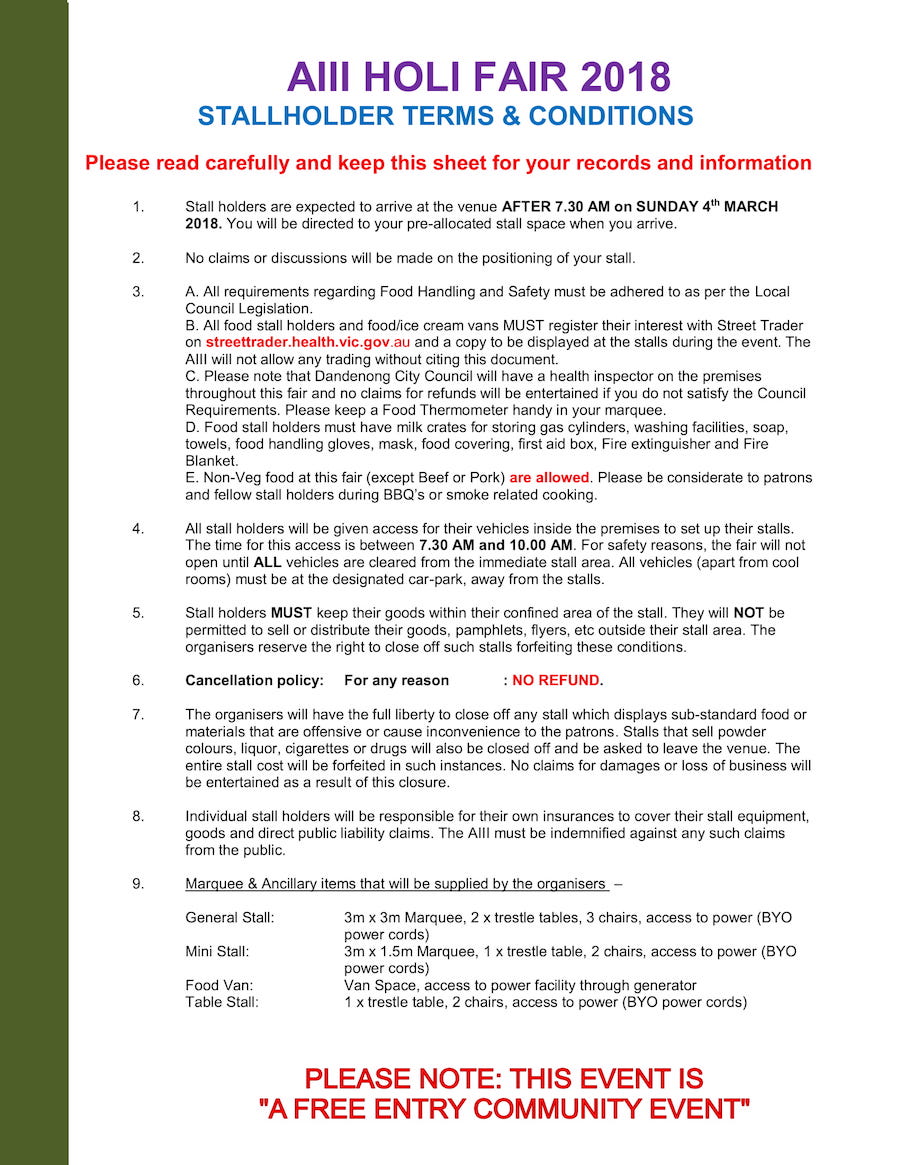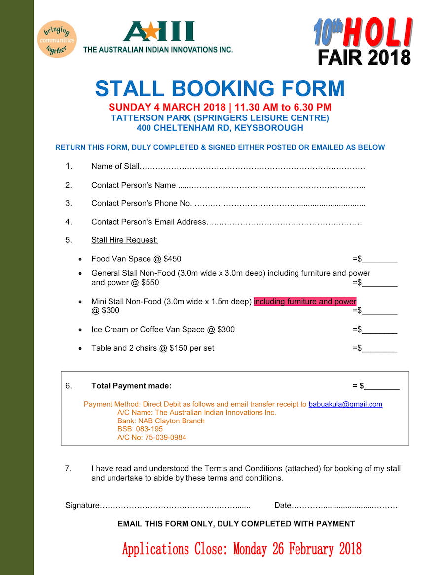 AIII The Australian Indian Innovations IncorporatedHoli Mela 2018 Forms